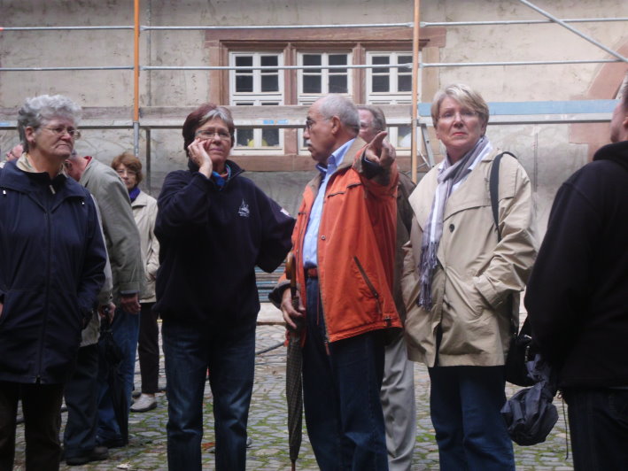 Mit vorheriger Schlossbesichtigung Schlossfreunde trafen sich zur ihrer Mitgliederversammlung Das Staunen war groß, als sich für die Mitglieder der Schlossfreunde am letzten Donnerstag Nachmittag die Tore zum Schloss öffneten. Sie sahen wunderschön renovierte Fachwerkfassaden, liebevoll wieder hergestellte Fenstereinfassungen aus Sandstein und im Park, die mehr und mehr in neuem Glanz erstrahlende Außenmauer aus Bruchstein. Der 2. Vorsitzende der Schlossfreunde, Klaus Mohrhardt, begrüßte über 30 Mitglieder und Herr Keler als Vertreter der Schlossbesitzer führte sachkundig und charmant durch die Anlage. Die Gäste erfuhren, dass die Renovierung der Fassaden des Nordflügels und von Teilen des West- und Ostflügels - insbesondere im Innenhof - schon weit fortgeschritten ist. An der Giebelfassade des Ostflügels wurde Originalfachwerk aus dem 15. Jahr-hundert in sehr gut erhaltenem Zustand entdeckt - mit für unsere Gegend einmaligen Fassadenmalereien. Herr Keler verband an dieser Stelle seine Erläuterungen mit dem Hinweis, dass die Bauarbeiten eng vom Landesamt für Denkmalpflege begleitet werden und wöchentliche Beratungen und Besprechungen vor Ort stattfinden. Nach gut einer Stunde endete die, sich auf die Außenbereiche konzentrierende, Führung mit dem Applaus der Gäste, dem Dank von Klaus Mohrhardt an Herrn Keler und der Überreichung eines kleinen Präsentes. Im Anschluss an die Schlossbesichtigung begrüßte der 1. Vorsitzende der Schlossfreunde, Manfred Lautenschläger, die zahlreich erschienen Mitglieder im Sportlerheim „Germania -Treff bei Tanja“ zur Mitgliederversammlung 2010. In seinem Rückblick auf das Vereinsjahr erwähnte er besonders den neu eingerichteten Stammtisch der Schlossfreunde, der erstmals am 20.April 2010 stattfand und Informationen mit dem Geschehen rund um das Schloss mit einem gemütlichen Zusammensein verband. Auf der Tagesordnung der Mit-gliederversammlung standen als nächstes turnusgemäß Vorstandswahlen. Der 1. Vorsitzende Manfred Lautenschläger, sein Stellvertreter Klaus Mohrhardt und Beiratsmitglied Kurt Schäfer wurden einstimmig wiedergewählt. Ebenso einstimmig erfolgte die Wahl des neuen Geschäftsführers Günter Blickhan und der neuen Beiratsmitglieder Karin und Heinz Lach. Manfred Lautenschläger bedankte sich bei den ausscheidenden Vorstandsmitgliedern Gisela Willand (Geschäftsführerin), Wilhelm Spiehl und Willy Willand (beide Beirat) sehr herzlich für die geleistete Arbeit und überreichte ihnen – unter dem Applaus der Vereinsmitglieder – kleine Präsente. Mit der Wahl von Gisela und Heike Willand als Kassenprüfer war die Führungsmannschaft der Schlossfreunde wieder komplett. Für 2011 haben sich die Schlossfreunde vorgenommen weitere Stammtische zu veranstalten und - in enger Abstimmung mit den Schlossbesitzern und dem Architekturbüro Rau - die Mitglieder und interessierte Bürger über den Baufortschritt und über Wissenswertes zum Schloss zu informieren. |